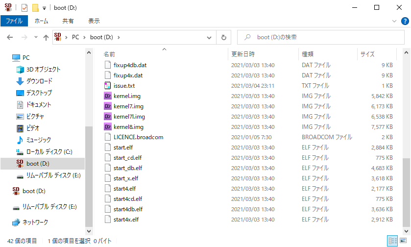 以上でmicroSDカードの作成は終了です。